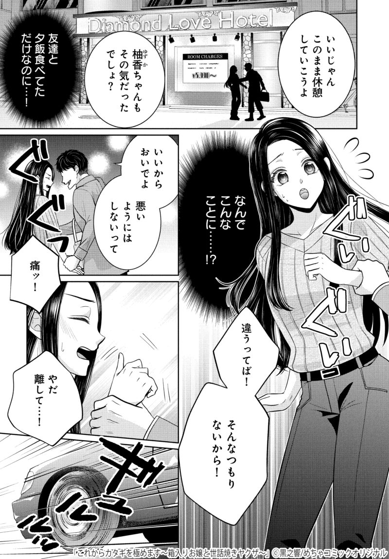 主人公の柚香は、ある日の晩、食事を楽しんだ帰り道。一緒になった男に無理矢理ラブホに連れ込まれそうになる。